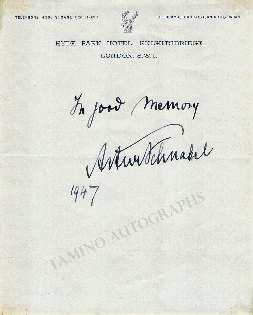Artur Schnabel Autograph Signed Album Page 1947 – Tamino
